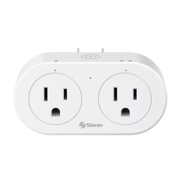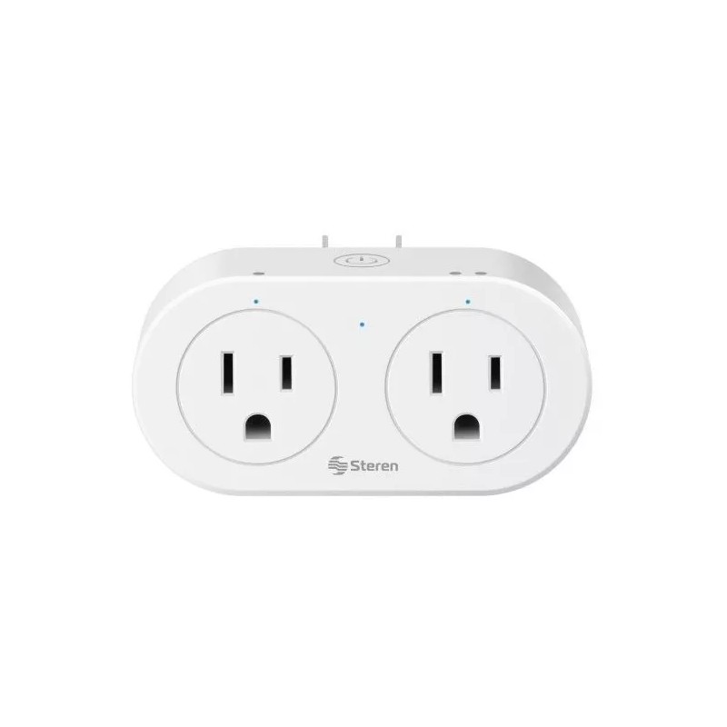 Con este contacto Wifi doble conecta hasta dos equipos eléctricos como cafeteras, ventiladores, luces decorativas, módems, entre otros, para encenderlos y apagarlos, aunque estés fuera de casa.