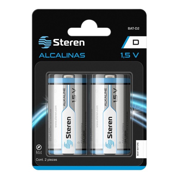 STEREN Paquete de 2 Pilas alcalinas D
