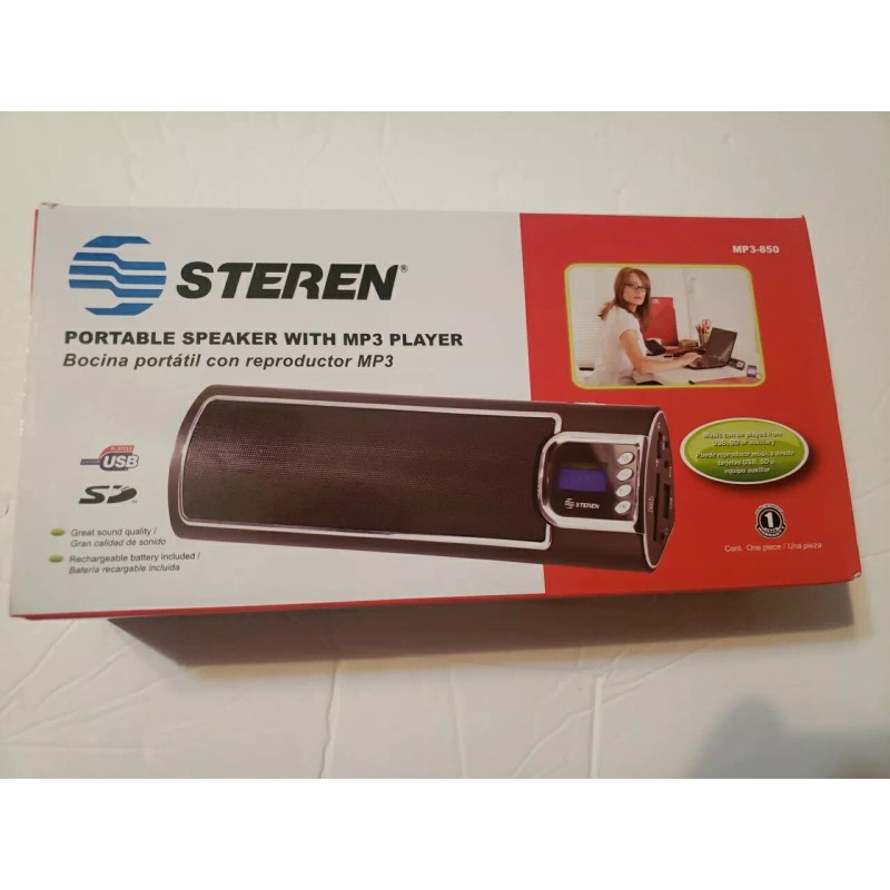This black MP3 player is designed for convenience, with a headphone jack for private listening and easy-to-use controls for simple operation. The STEREN MP3-850 model is perfect for anyone who wants to take their music with them, whether you're jogging in the park or relaxing at the beach. Get your hands on this versatile and reliable portable speaker today!