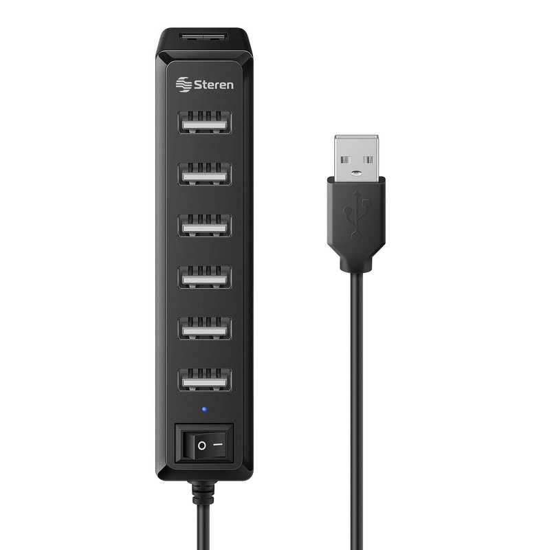 Steren USB-537 Hub de 7 Puertos USB 2.0 C/Eliminador