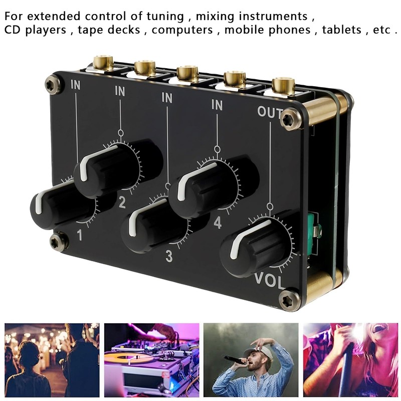 Stereo Audio Mixer 3.5mm 4 Channel Portable Mini Audio Mixer Fashion Stereo Audio Splitter Small Sound Mixer with Separate Volume Control No External Power for Instrument