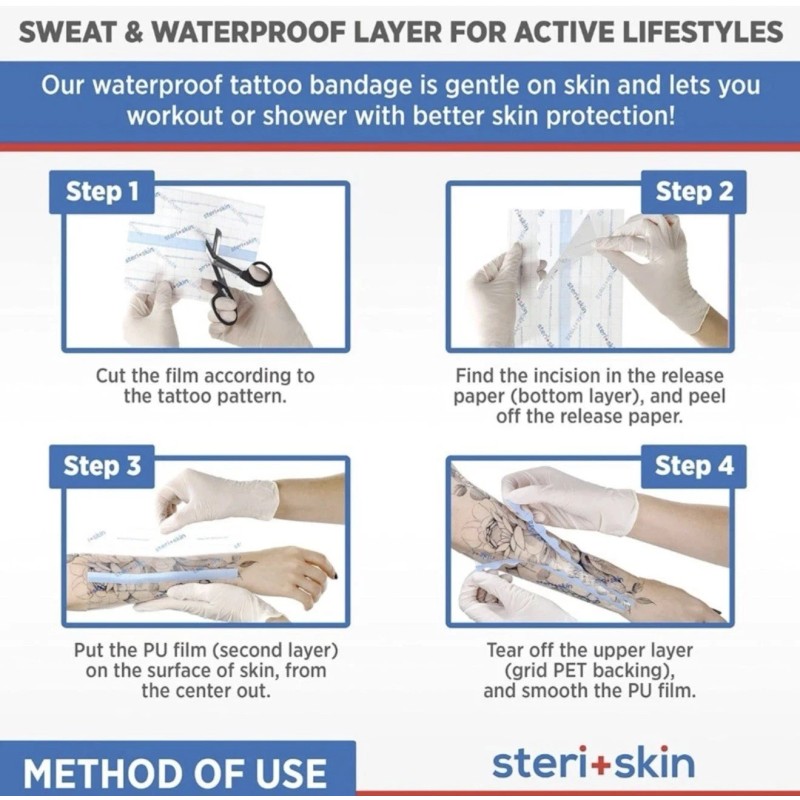 - Theme: Tattoo, Tattoo Aftercare, Aftercare, Dressing, Dressing Film, Film, Sanitary, Transparent, Clear, Flexible, Waterproof