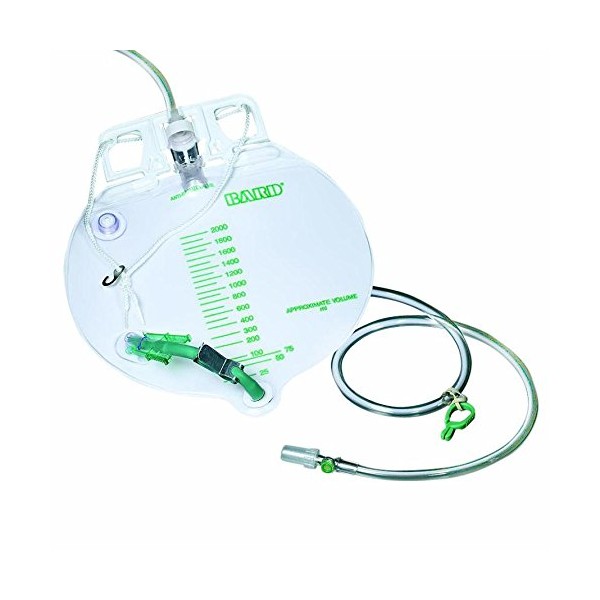This Bedside Drainage Bag features anti-reflux valve, vented drip chamber, urine sample port on catheter connector tubing.