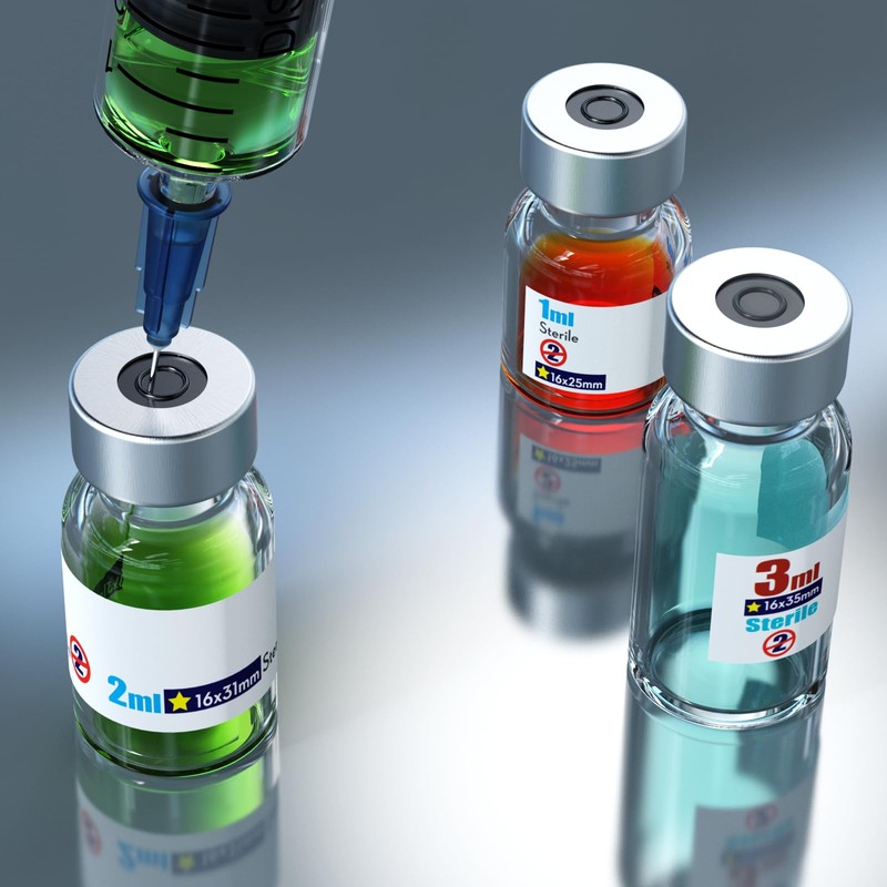 - Teflon coated non-latex chlorobutyl rubber stoppers.