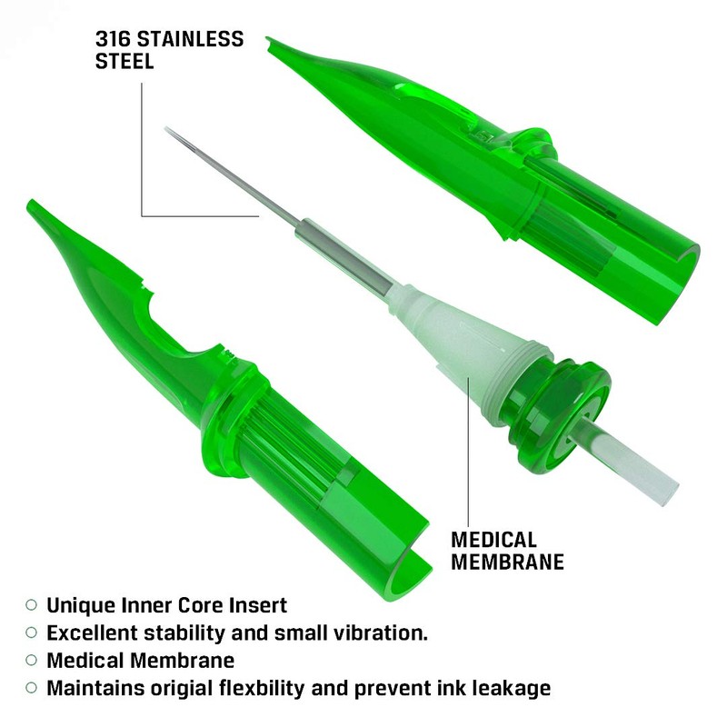 Sterilised Disposable Cartridge Needles Emerald Patent Round Liner Series Fit Stigma Cartridge Grips and Machine Pen Round Liner (9RL) Pack of 20