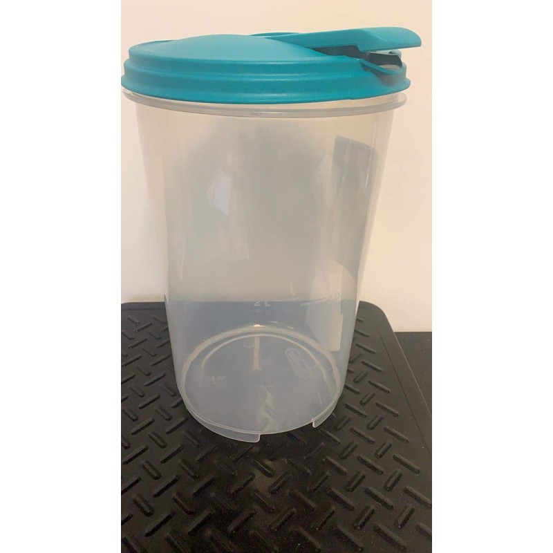 Sterilite 0488 One-Gallon Round Pitcher, Clear Base with Blue-Atoll (Teal) Lid and Tab