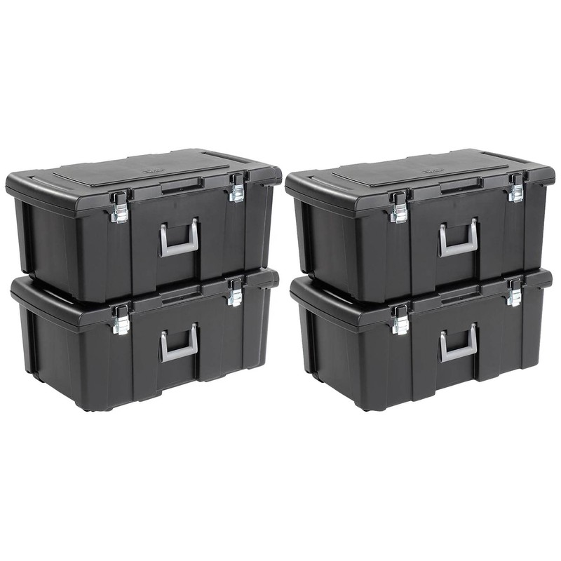 Sterilite 16 Gallon Lockable Footlocker with Wheels, Black (4 Pack) 18429001