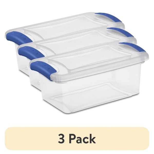 Sterilite (3 pack) 7 Quart Latch Box, Clear Plastic Storage Bin with Clear Lid, Blue