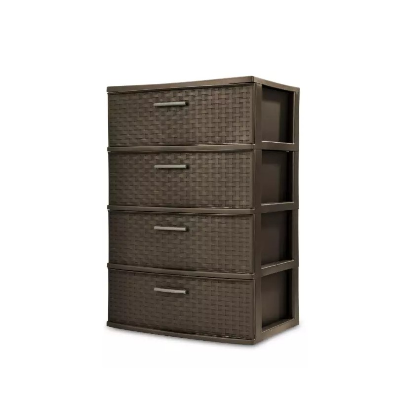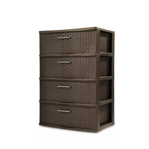 Sterilite 4 DRAWER WIDE WEAVE TOWER Durable Plastic Storage Spacious Organizer, Espresso