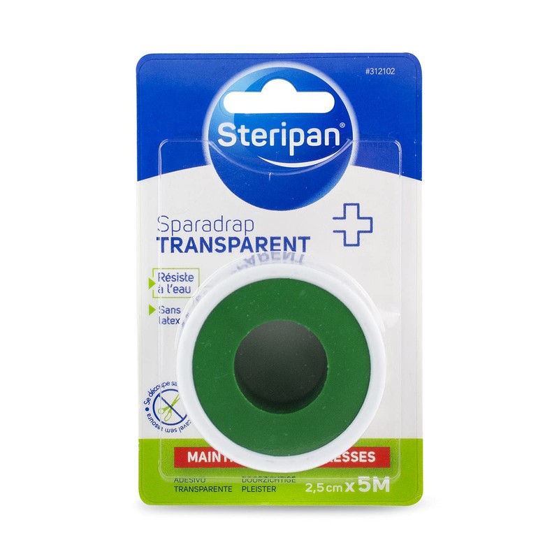 - Sparadrap transparent steripan: it ensures comfort and optimal hold of the compresses.