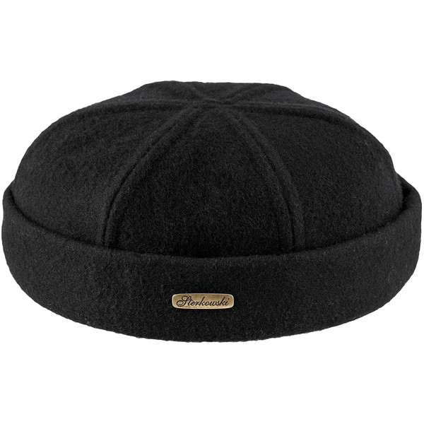 Sterkowski Docker Beanie Cap | 100% Wool | 54-65 cm Navy Watch Work Sailor Brimless Skullcap Fisherman Nautical Handyman Bushcraft Trawler Warm Mens Winter Harbour Cap UK 7 1/8 Black