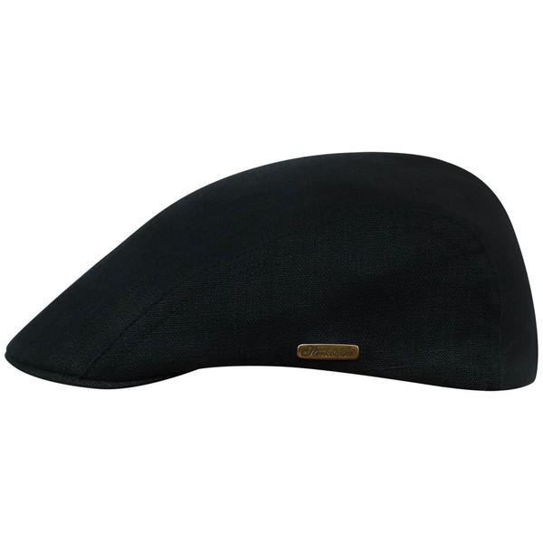 Sterkowski Gecko Flat Cap | 100% Linen Super Light Summer Hat with Cotton Sweatband, black