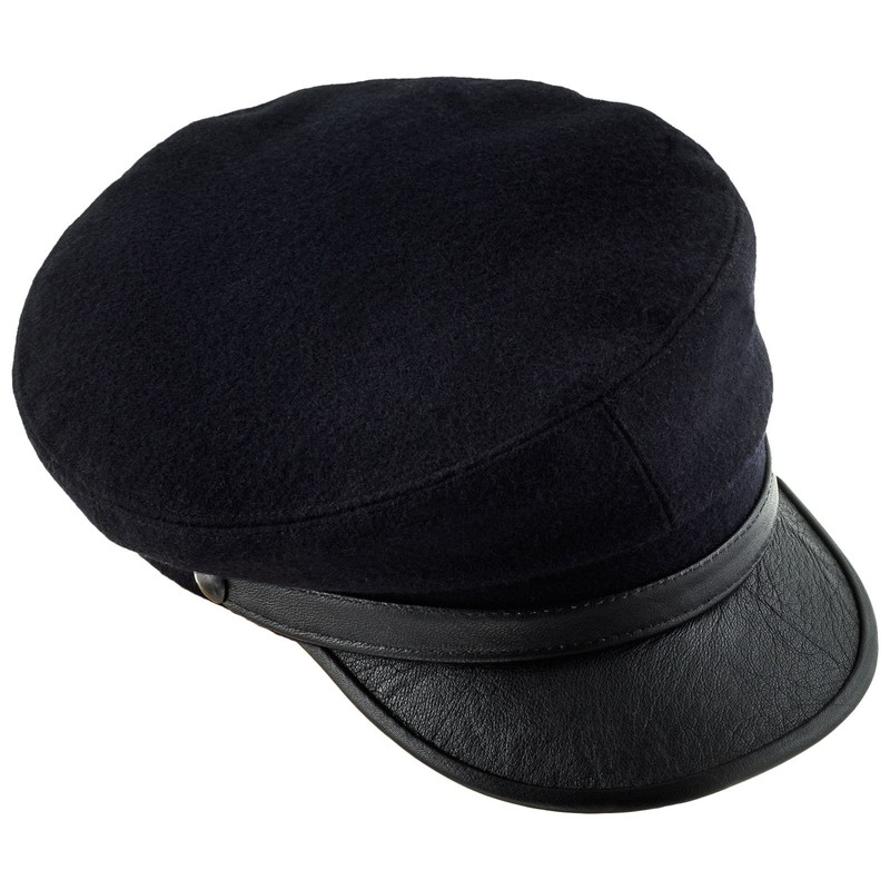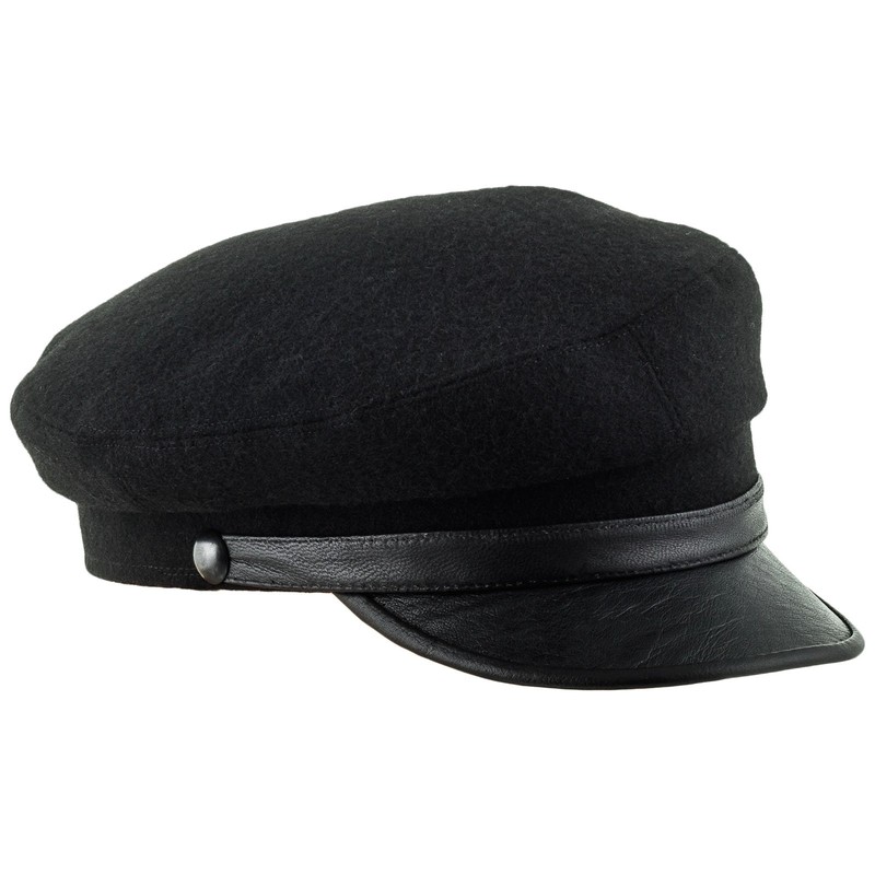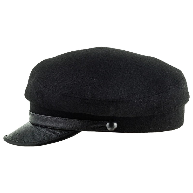 Sterkowski Maciejowka Model 4 Sailor Hat Wool Peaked Cap for Men and Women Traditional Warm Elbsegler Cap with Leather Visor, black