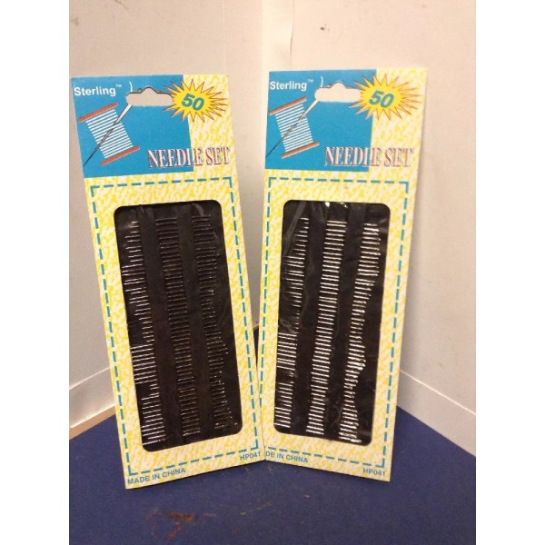 New in pack you will Recieve two packages of 50 needles for a total of 100 sewing needles- Manufactured by sterling- These needles are still in there origional packkaging but have been affected by HUMIDITY in our storage room-these were part of are very large order and only a few packs were affected so we are offering them for 2 for the price of 1 ,we have sold 78 sets of these needles-please check photos for condition,color,defects,shape size....no returns or refunds accepted Fast Shipping ......these needle show some signs of rust on some of them,please look at photos there are new with defects....