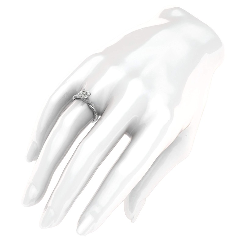 - This solid Sterling Silver 1CT round brilliant cut engagement ring is highly polished. It is 4-prong set with 1 carat (6.5mm diameter, or 0.25inches) round brilliant cut clear simulated diamond. The special twisted band shank measures 2.5mm in width. There are 22 stones in total set in sides. The stone is AAAAA quality, reflecting the sparkle same as diamonds do, which is very nice and attractive, making the ring look like real diamond ring.