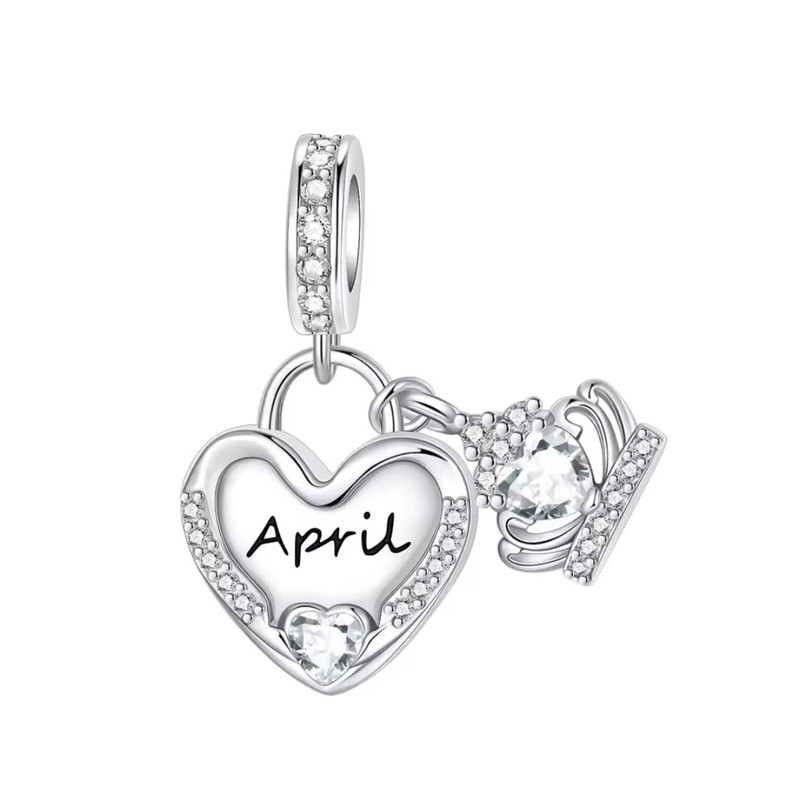 - BIRTHSTONE DESIGN: Elegant April birthstone charm featuring clear crystal in a heart-shaped sterling silver setting