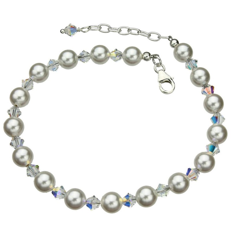 Sterling Silver Ankle Bracelet, Crystal Simulated Pearls 9"+1" Extender