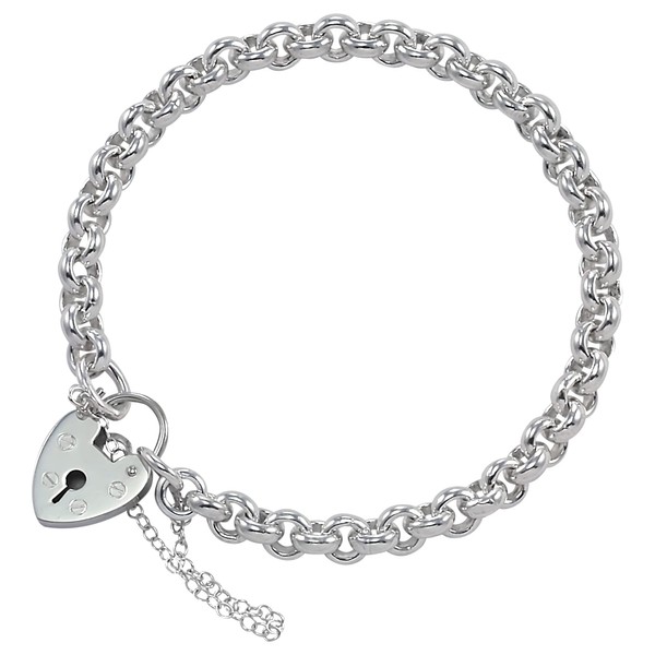Sterling Silver Belcher Charm Bracelet with Heart Clasp 6"