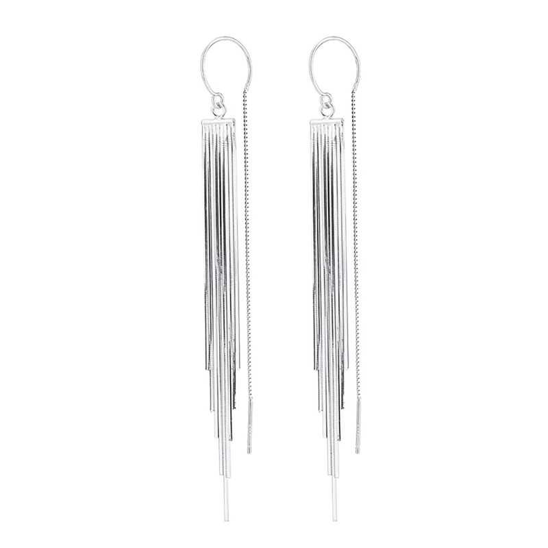 Sterling Silver Big Drop Earrings 925 Tassel Linear Ear Hanging Shimmering Fan Statement Teardrop Earrings 43