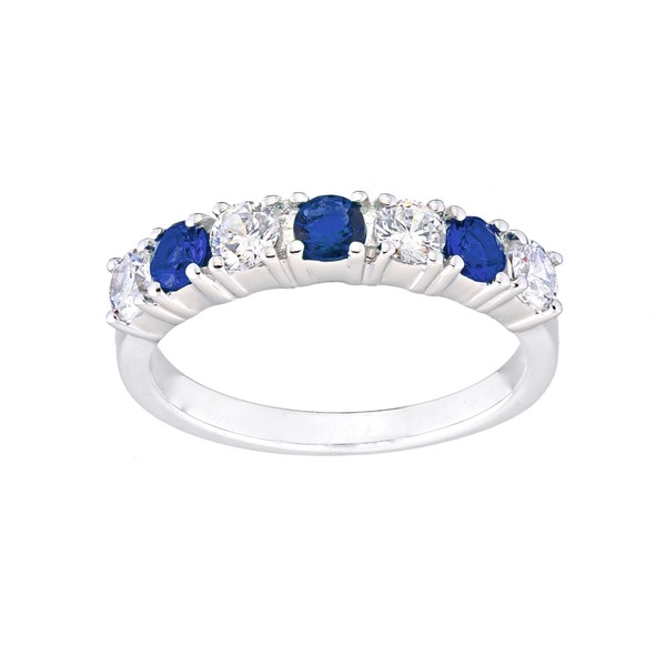Sterling Silver Blue Sapphire 7 Stone Eternity Ring - sizes J to V (Q)