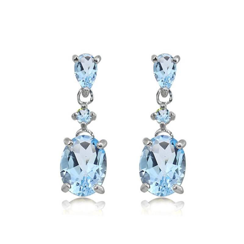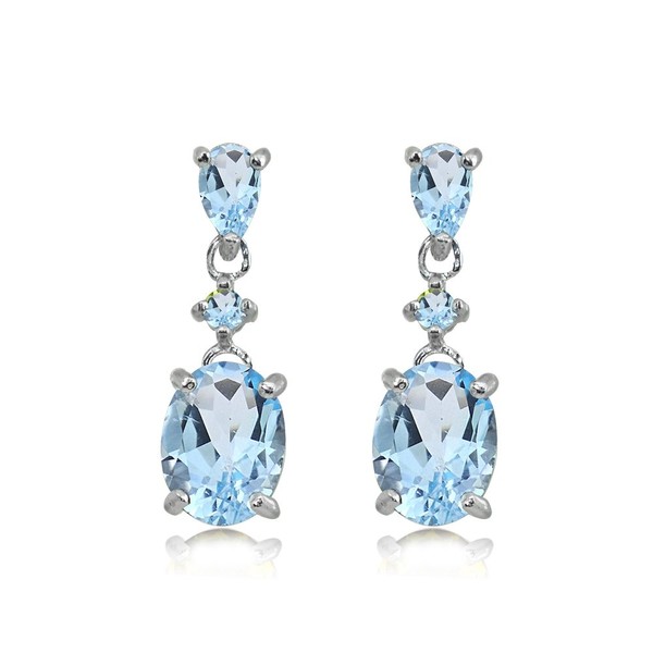 Sterling Silver Blue Topaz Oval Three Stone Drop Dangle Earrings for Women