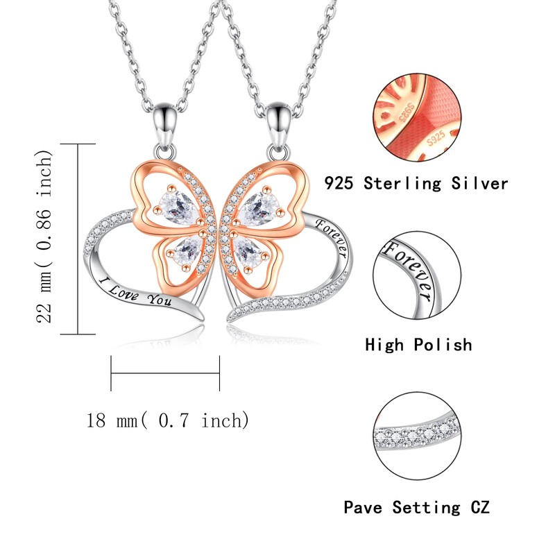 - This butterfly matching necklaces are feature with heart and butterflies, expressing freedom and love. When we are together, we are a whole, and when we are not together, we can fly alone.