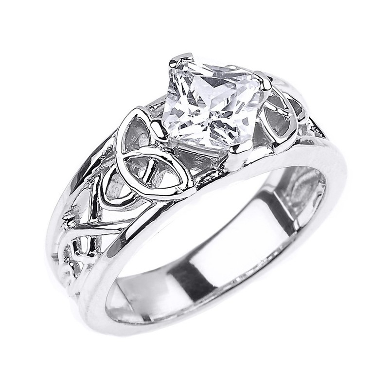 Sterling Silver Celtic Knot Princess Cut CZ Engagement Ring(Size 8)