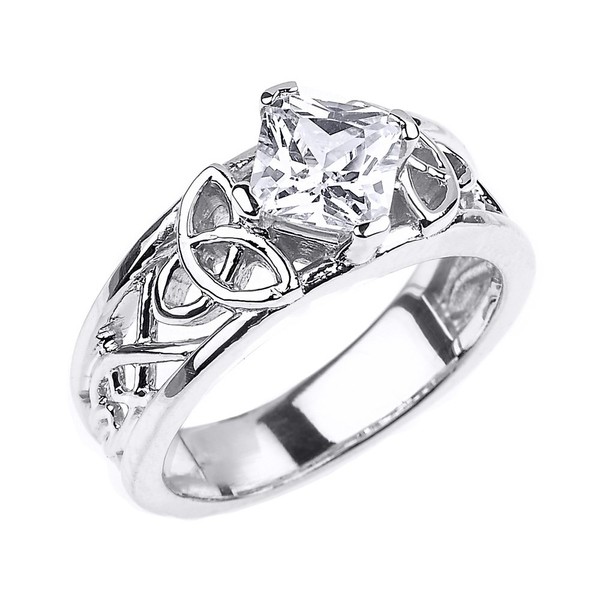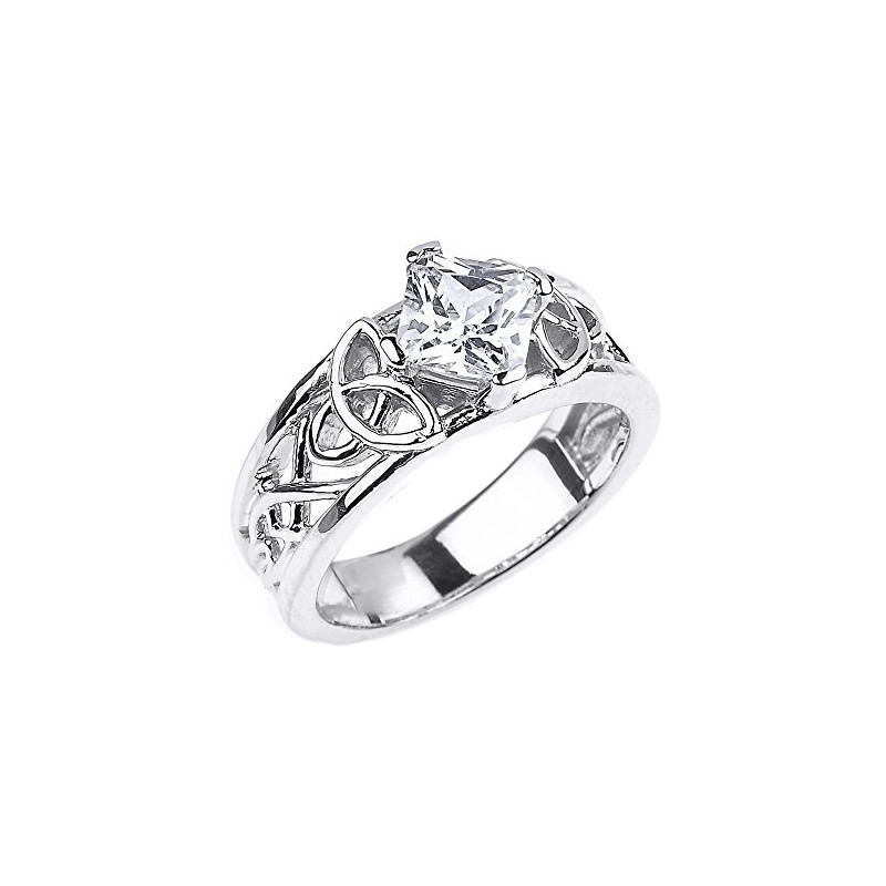 Sterling Silver Celtic Knot Princess Cut CZ Engagement Ring(Size 9)