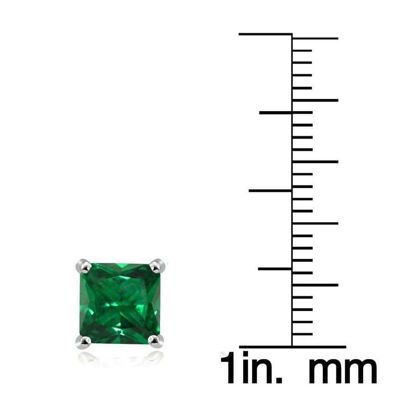 - Stud earrings feature 7mm square created emerald gemstones. The earrings are crafted of .925 sterling silver, nickle and tarnish free.