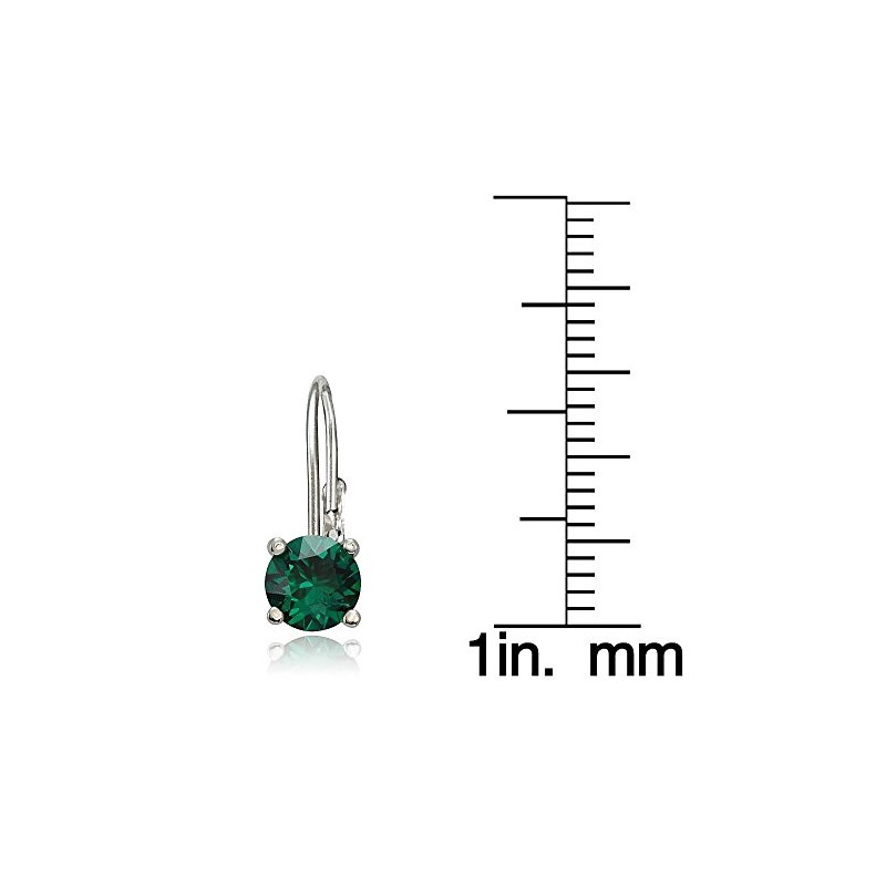 Sterling Silver Created Emerald Round Prong-Set Leverback Earrings