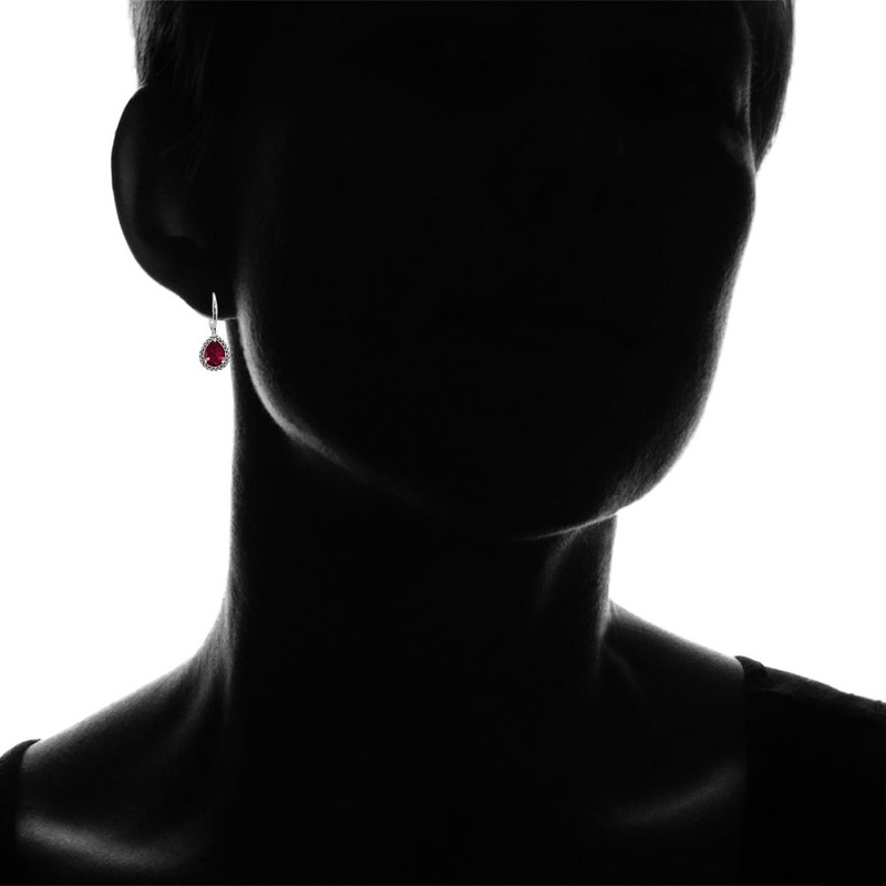 - These beautiful dangle earrings showcase pear-cut created ruby gemstones set with a vintage-inspired oxidized rope detail.