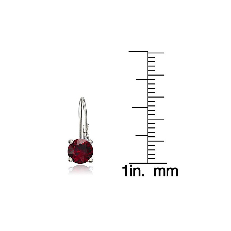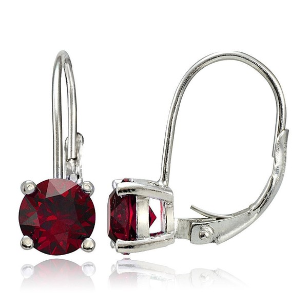 Sterling Silver Created Ruby Round Prong-Set Leverback Earrings