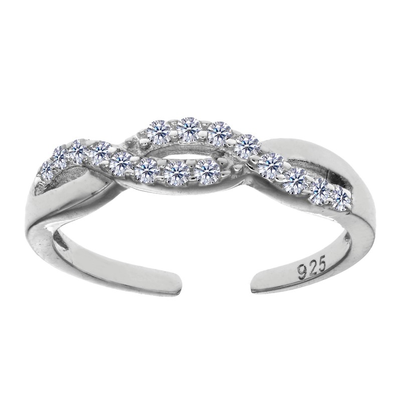 Sterling Silver Crossover Infinity With CZ Cuff Style Adjustable Toe Ring