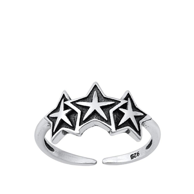Sterling Silver Cute Midi Oxidized Three Stars Band Astrological Toe Ring 925