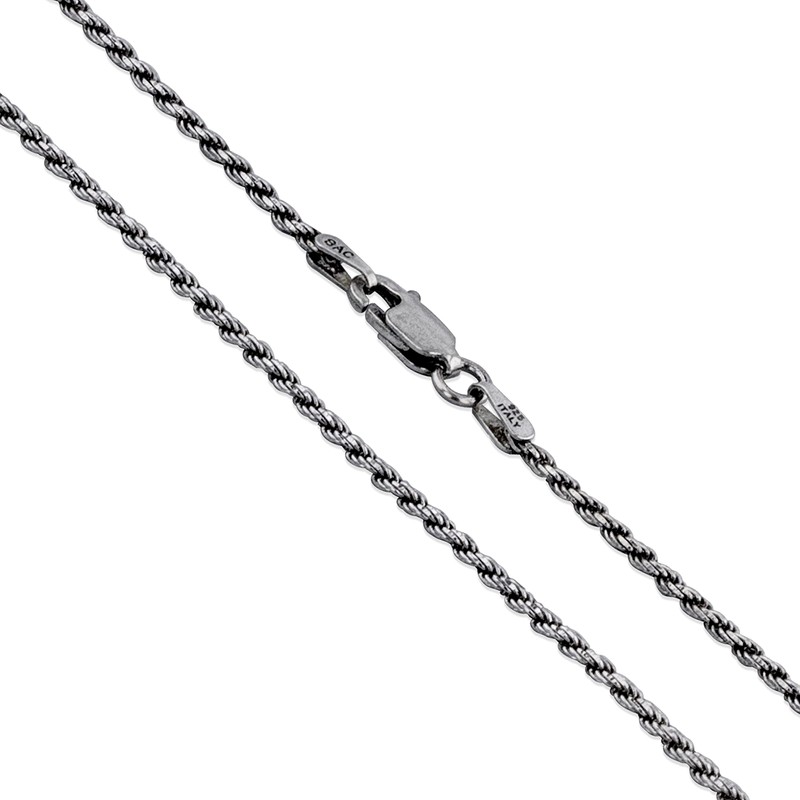 Sterling Silver Diamond-Cut Oxidized Rope Chain 1.7mm 925 Antiqued Necklace 24"