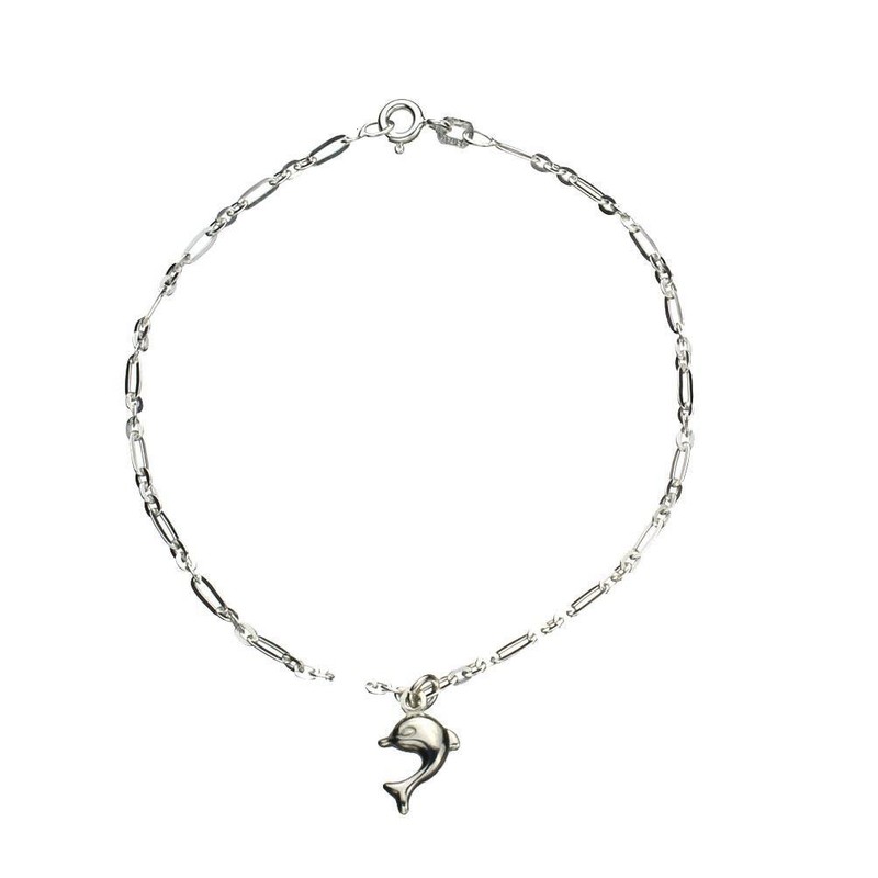 Sterling Silver Dolphin Charm Bracelet Anklet Italy, 7.5"
