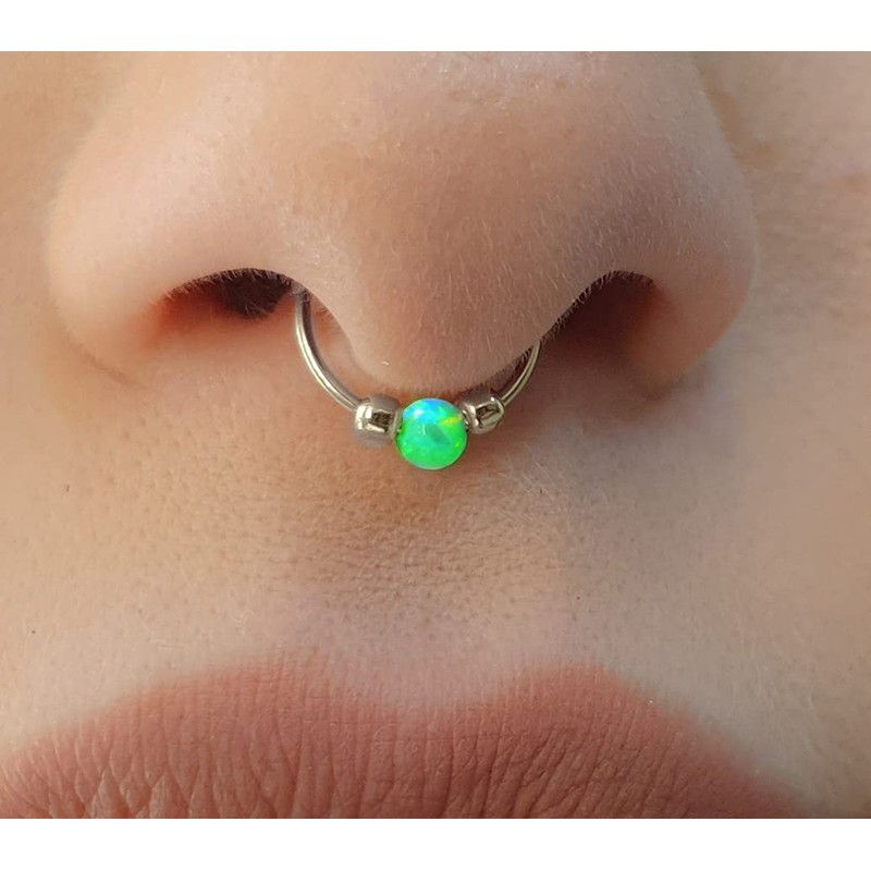 - BOLD & UNIQUE GREEN OPAL DETAIL – The tiny green opal gives a vibrant, eye-catching pop of color, making this faux septum ring a must-have accessory.