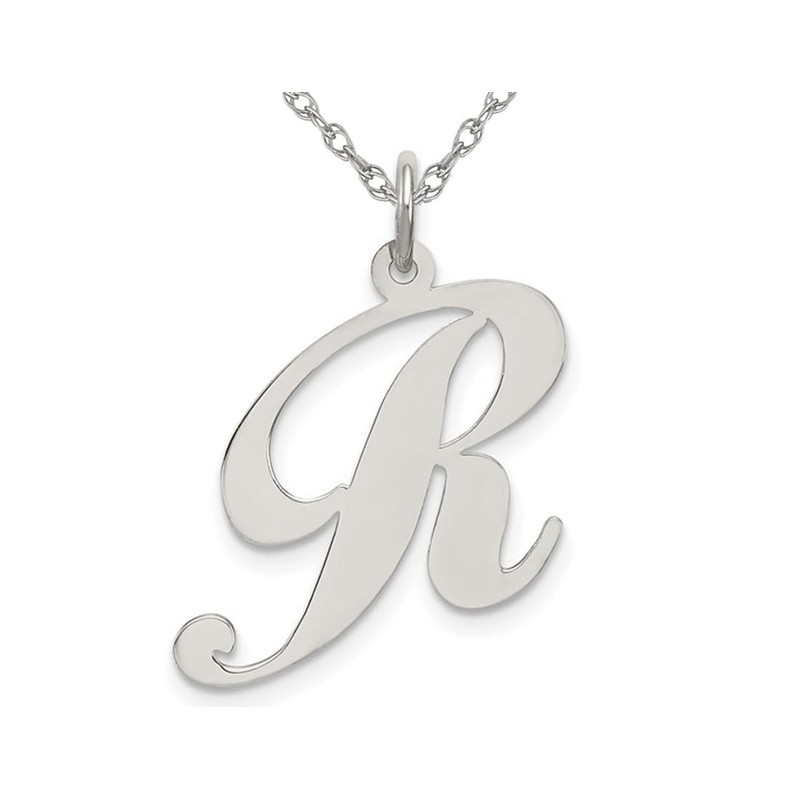 Sterling Silver Fancy Script Initial -R- Pendant Necklace Charm with Chain