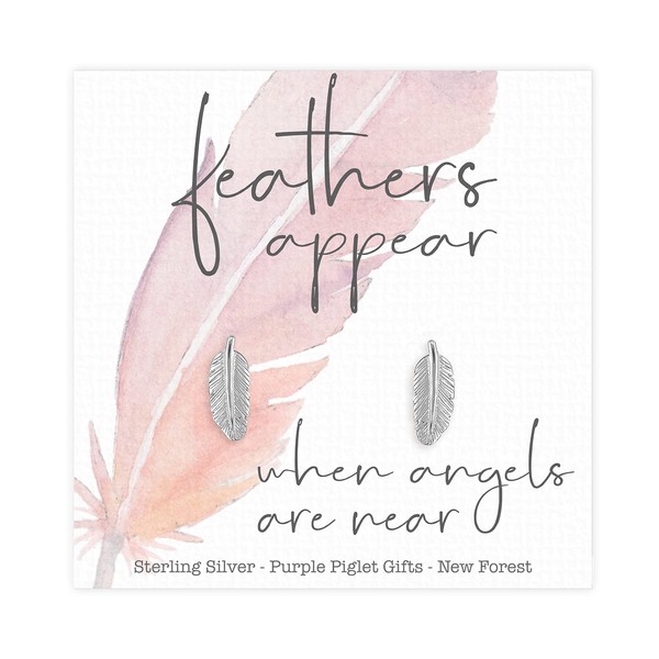 Sterling Silver Feather Earrings For Beareavement Gift 'Feathers Appear When Angels Are Near' Loss Present Boxed Ear Studs Jewellery
