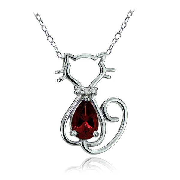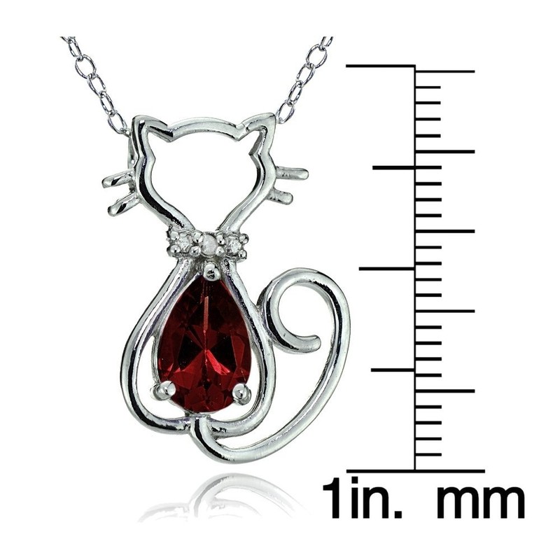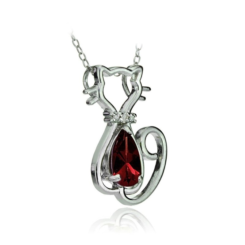 Sterling Silver Gemstone Filigree Cat Slide Pendant, Stone Sterling Silver, Garnet