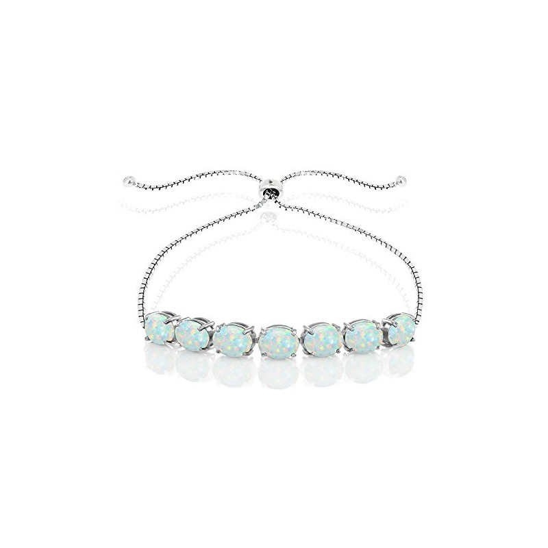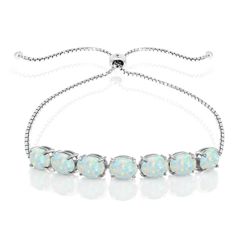- Feature - This stunning sliding adjustable bracelet features prong-set 9x7mm oval-cut synthetic white opal gemstones