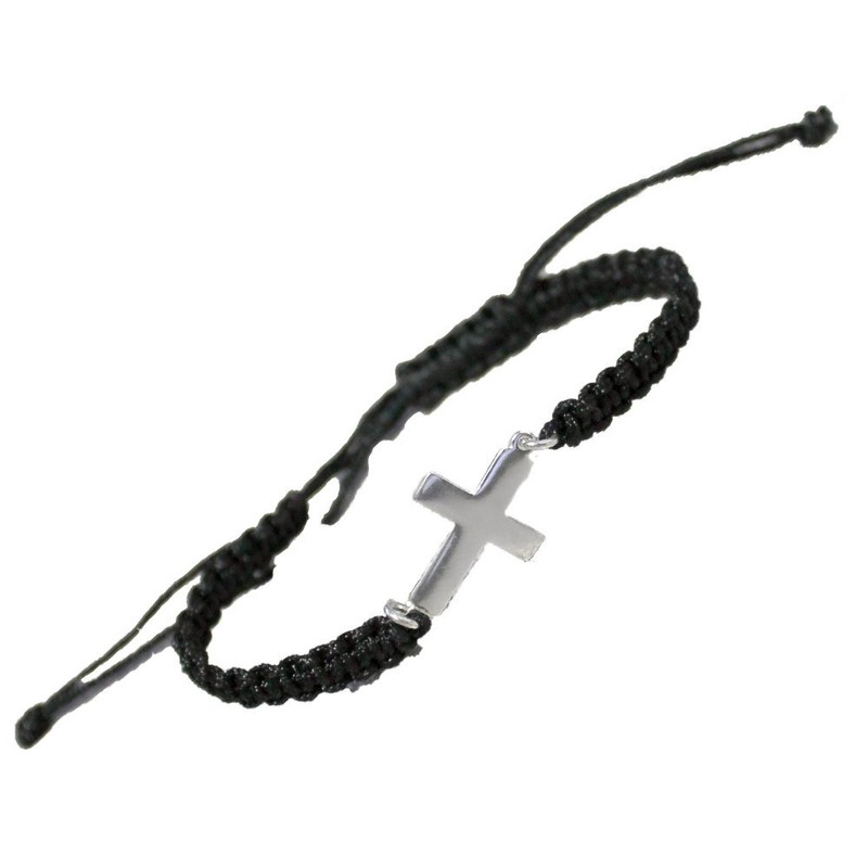 Sterling Silver Greek Orthodox Cross with Rosary (Komboskini) Style Adjustable Macrame Bracelet, Handmade in Greece