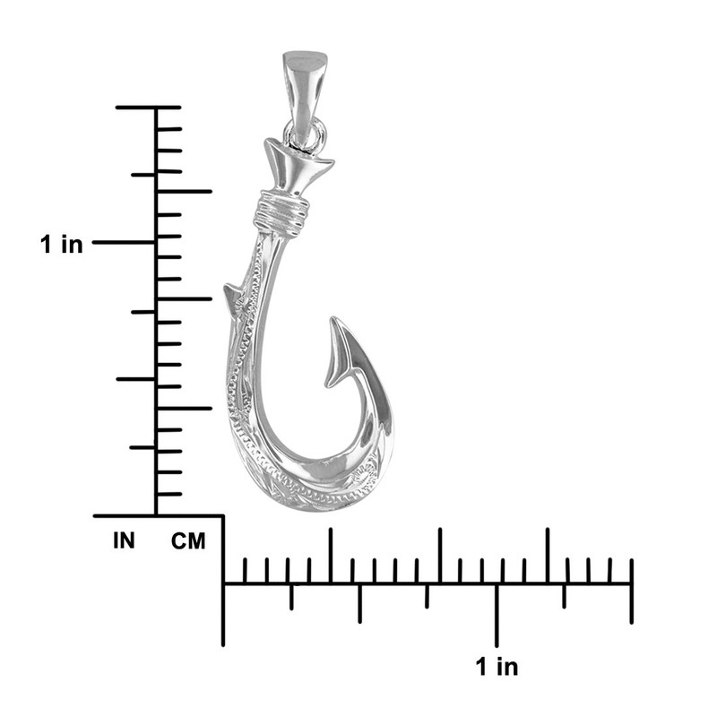 - Features: A reversible sterling silver fish hook pendant with hand engraved Hawaiian heirloom scroll detail. Enjoy two different looks with maile leaf design on one side, Hawaiian scroll design on the other. Picture shows two pendants for design reference only. You will receive one pendant with both designs on each side