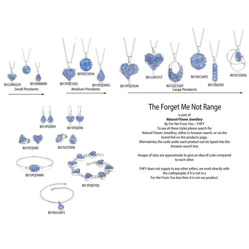 This jewellery captures the charm of real life Miniature Flowers. They are forever frozen in time. Each flower, is set in resin to guarantee it’s youthful bloom and then lovingly encased in sterling silver.