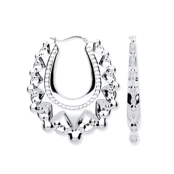 Sterling Silver Huge Victorian Style Gypsy Oval Creole Hoop Earrings