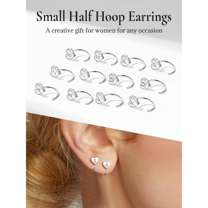 - Heart half hoop earrings, with personalized Initial A-Z letter, cute and lovely, minimalist style never out of fashion.