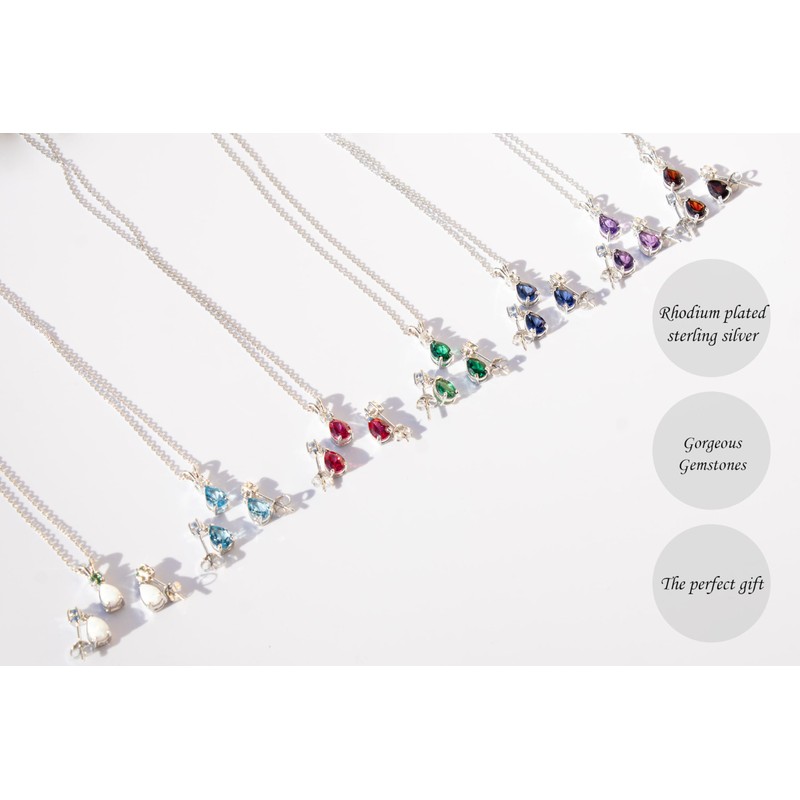 This gorgeous jewelry set for women, fashioned out of .925 sterling silver, includes a pear shaped gemstone pendant neckalce as well as a pair of matching pear shaped gemstone stud earrings with white topaz. This jewelry gemstone set comes in Lab Created Ruby, Amethyst, Blue Sapphire,Swiss Blue topaz, Garnet, Emerald and Opal. Both the pendant necklace and matching earrings feature a rhodium plated finish which gives this set anti-tarnishing properties as well as long lasting durability. This jewelry set makes for a perfect gift this holiday season. The pear shaped gemstone pendant with white topaz comes with a 17.5 inch anchor chain on top of the already included matching pear shaped gemstone earrings with white topaz. This jewelry set is both fashionable and versatile as it can be worn for both informal and formal occasions.