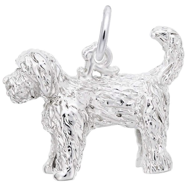 Sterling Silver Labradoodle Dog - 0.69" x 0.56" (16mm x 14mm)
