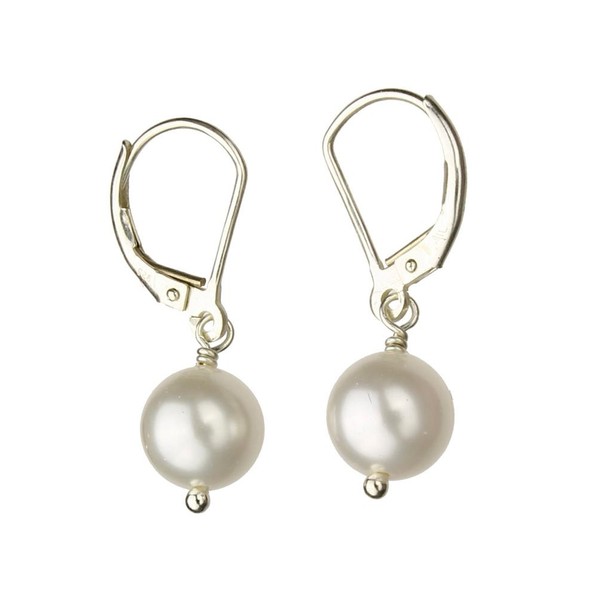 Sterling Silver Leverback Earrings White 8mm Crystal Simulated Pearl