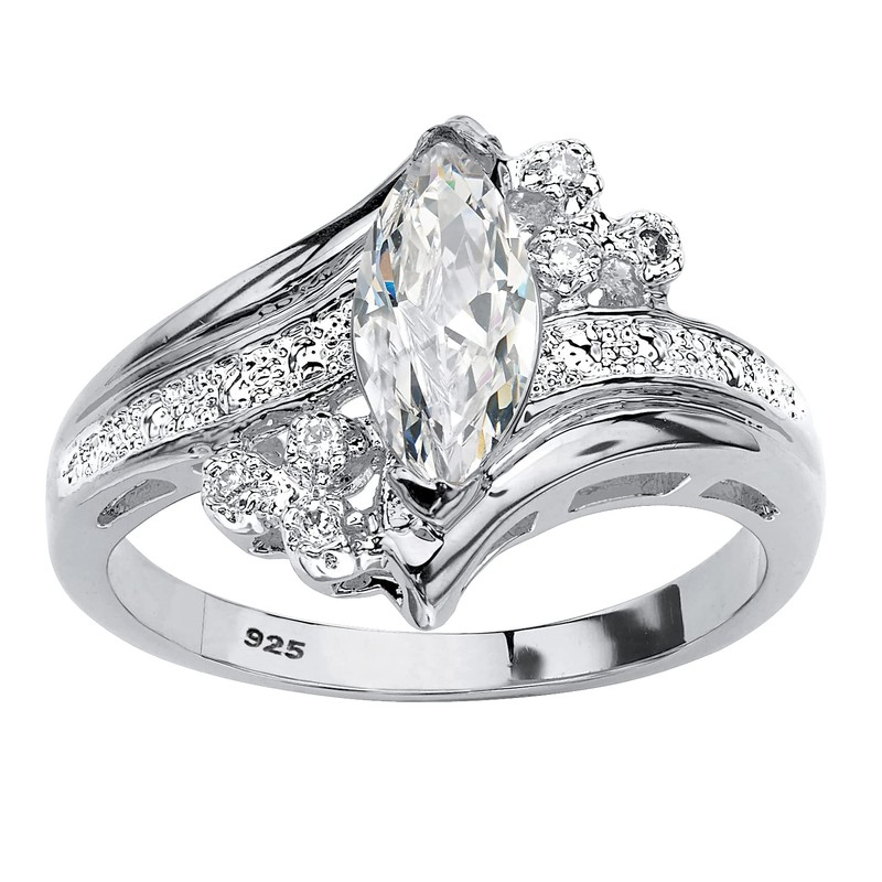 Sterling Silver Marquise Cut Cubic Zirconia Engagement Anniversary Bypass Ring Size 6